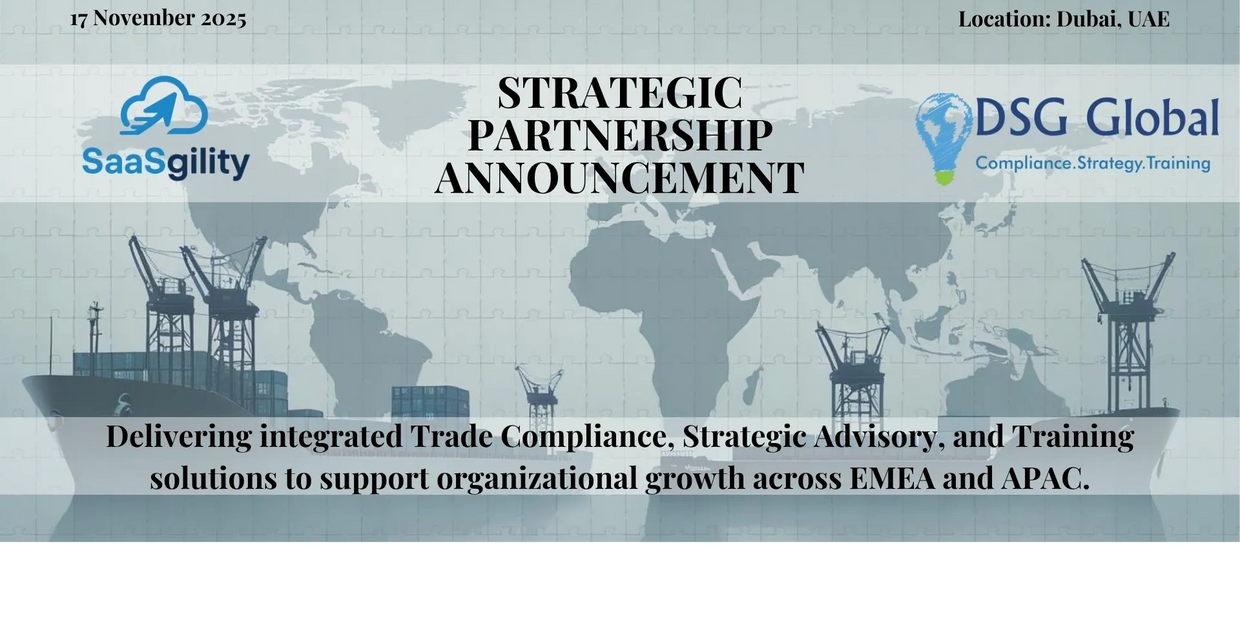 Through this alliance, both firms will deliver an integrated suite of compliance solutions, combining DSG Global’s domain authority with SaaSgility’s regional ecosystem and go-to-market acceleration framework. Leveraging its on-ground market insight, SaaSgility Partners will also play a key role in identifying regional priorities and co-creating tailored consulting and training solutions to address specific compliance and capacity-building needs. The partnership enables clients in the Middle East and Southeast Asia to access U.S.-grade trade compliance advisory services delivered with localized insight, agility, and digitally enhanced engagement.